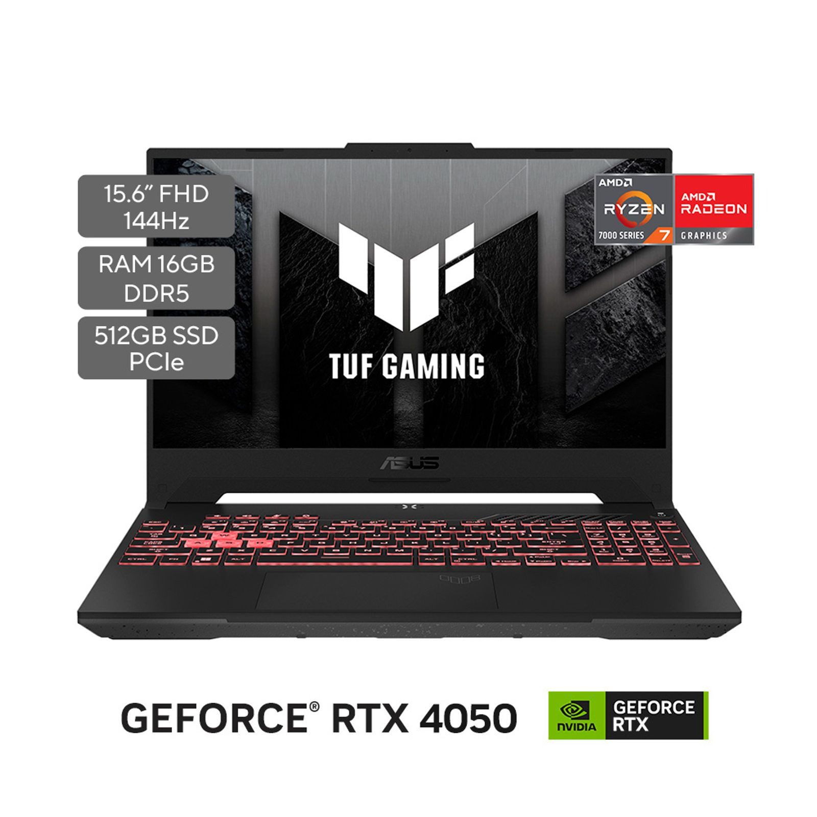 PORTATIL ASUS TUF GAMING A16/ AMD RYZEN 7/RTX 4050 6GB/MEMORIA 16GB/ DISCO SSD 512GB/ PANTALLA 15.6″ 144HZ